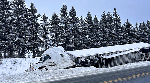 A transport ended up in the ditch on the east side of Highway 11 near Bolger Avenue in Temiskaming Shores on February 11 as rapidly changing weather and suddenly …